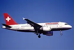 Delivery of the first A319, to Swissair, occurred on 25 April 1996; it entered service by month's end.[9] In January 1997, an A319 broke a record during a delivery flight by flying the 3,588 nautical miles (6,645 km; 4,129 mi) great circle route to Winnipeg, Manitoba from Hamburg in 9 hours and 5 minutes.[9] The A319 has proven popular with low-cost airlines such as EasyJet, which purchased 172 of them.[1]