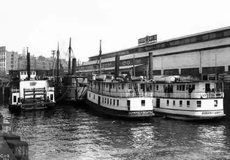 ![]() Albion and other steamers at Galbraith dock (now Pier 54), Seattle, circa 1904. | |