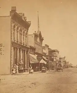 Many American merchants, mountain men, and settlers slowly filtered into Albuquerque, creating a major mercantile commercial center in Downtown Albuquerque. From this commercial center on July 4, 1882, Park Van Tassel became the first to fly a balloon in Albuquerque with a landing at Old Town.[23] This was the first balloon flight in the New Mexico Territory.