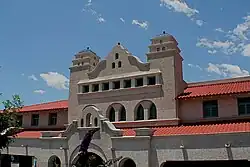 By 1900, Albuquerque boasted a population of 8,000 and all the modern amenities, including an electric street railway connecting Old Town, New Town, and the recently established University of New Mexico campus on the East Mesa. In 1902, the Alvarado Hotel was built adjacent to the new passenger depot, and it remained a famous symbol of the city for decades.[26] Outdated, it was razed in 1970 and the site was converted to a parking lot.[27]