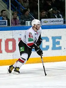 1. ^ Wyshynski, Greg (January 21, 2012). "KHL's Alexander Ryazantsev sets new 'world record' for hardest shot at 114 mph". Yahoo. Retrieved August 7, 2012.