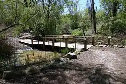 Boardwalk across a stream leading from Oakland Lake to Alley Creek