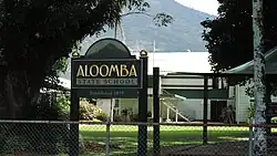 Aloomba State School is a government primary (Prep-6) school for boys and girls at Nielsen Street (17°06′35″S 145°49′55″E / 17.1098°S 145.8319°E).[10][11] In 2016, the school had an enrolment of 88 students with 7 teachers (6 full-time equivalent) and 8 non-teaching staff (3 full-time equivalent).[12] In 2018, the school had an enrolment of 91 students with 7 teachers (6 full-time equivalent) and 9 non-teaching staff (3 full-time equivalent).[13]