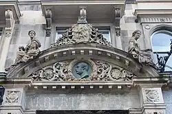 - Figures of "Painting" and "Poetry" flanking the shoulders of the ornate entrance to the Albert Buildings, 22–30 Shandwick Place, Edinburgh (1877)[5]