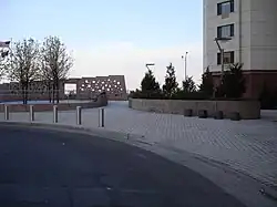 A memorial was constructed in Rockaway Park, the community adjoining Belle Harbor to the east, in memory of the 265 victims of the crash. It is situated beside the Rockaway Beach and Boardwalk at the south end of Beach 116th Street, a major commercial street in the area. It was dedicated on November 12, 2006, the fifth anniversary of the accident, in a ceremony attended by then-Mayor of New York City Michael Bloomberg. A ceremony commemorating the disaster is held annually at the memorial every November 12, featuring a reading of the names of those killed aboard the aircraft and on the ground, with a formal moment of silence observed at 9:16 am, the estimated time of the crash. The memorial wall, designed by Dominican artist Freddy Rodríguez and Situ Studio, has windows and a doorway looking toward the nearby Atlantic Ocean and angled toward the Dominican Republic. It is inscribed with the names of the victims.[53] Atop the memorial is a quotation, in both Spanish and English, from Dominican poet Pedro Mir: "Después no quiero más que paz" (which translates to "Afterwards I want nothing more than peace").[54]