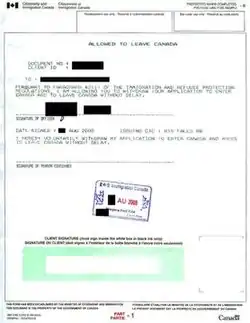 - ^ "ENF 2/OP 18 Evaluating Inadmissibility" (PDF). CIC.GA.CA. Archived from the original (PDF) on October 14, 2014. Retrieved September 29, 2014.
