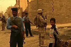 The 3rd Armored Cavalry Regiment was the first American military unit to reach Ramadi, arriving in early May 2003.[2] The 3rd ACR's headquarters was located at the Rifles Base, which by July had hundreds of laborers from around the world working around the clock to construct a dining hall and recreation area for American forces.[2]