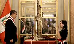 Ana María Sánchez, swearing in before President Ollanta Humala as Foreign Minister of the Republic of Peru