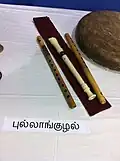 List of Musical instruments used by ancient Tamil people was listed in Tirumurai[3] dated between 6th and 11th century CE and include Akuli, Idakkai, Ilayam, Udukkai, Yezhil, Kathirikkai, Kandai, Karathalam, Kallalaku, Kalavadam, Kavil, Kazhal, Kalam, Kinai, Kinkini, Kilai, Kinnaram, Kudamuzha, Kuzhal, Kaiyalaku, Kokkarai, Kodukotti, Kottu, Kombu, Sangu, Sachari, Sanchalam, Salari, Siranthai, Silambu, Sinam, Thagunicham, Thakai, Thadari, Thattazhi, Thathalagam, Thandu, Thannumai, Thamarugam, Thaarai, Thaalam, Thuthiri, Thunthubi, Thudi, Thuriyam, Thimilai, Thondagam, Naral Surisangu, Padagam, Padutham, Panilam, Pambai, Palliyam, Parandai, Parai, Paani, Paandil, Pidavam, Perigai, Mathalam, Mani, Maruvam, Murasu, Muravam, Murugiyam, Murudu, Muzhavu, Monthai, Yaazl, Vangiyam, Vattanai, Vayir, Veenai, Veelai, and Venkural.
