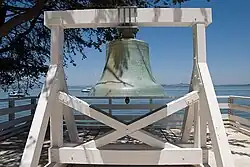 The Angel Island Chinese Monument (37°52′13″N 122°25′32″W / 37.87023°N 122.42563°W) is a monument dedicated to Chinese immigrants who entered the United States through the immigration station.[15] It was completed in 1978 and placed in 1979.[16] The monument's inscription says "Leaving their homes and villages, they crossed the ocean only to endure confinement in these barracks. Conquering frontiers and barriers, they pioneered a new life by the Golden Gate."[15] The inscription is reminiscent of Chinese poems that were carved into the barracks walls of the immigration station by detained Chinese immigrants.[17]