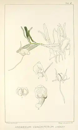 Angraecum conchiferum is a species of orchid found in Knysna and Tsitsikamma forests.