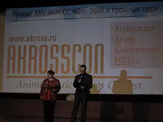 While music labels and corporations generally see AMVs in negative light, often the actual musical artists in question do not hold the same views. A number of AMV editors report to having had positive contact with various artists, including Trey Gunn and Mae.[9] Japanese electronic duo Boom Boom Satellites teamed with site AMVJ Remix Sessions to sanction an AMV competition to help promote one of their singles, going so far as to provide the source material for editors to use. The winner's video would be featured during one of the pair's tours. The first of this competition took place in January 2008 using the song "Easy Action" and the anime movie Vexille.[10] A second competition took place later that year in November using the song "Shut Up and Explode" and the anime Xam'd: Lost Memories.[11]