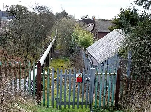 In 1931, passenger services were withdrawn when the line south of Annan across the Solway Firth was officially closed. However, the line remained open from Annan to Kirtlebridge for freight traffic until 1955 when it was closed completely. In 1965 the station's surviving goods shed along with the line's trackbed was reused for a waste water pipeline from Chapelcross nuclear power station.[2] The station house at Annan Shawhill is now a private dwelling.[3]