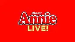 Annie Live! is an American musical television special that aired on NBC on December 2, 2021. It was a performance of the 1977 Broadway musical Annie, which is based on the comic strip Little Orphan Annie by Harold Gray.[1] The production was the fourth on-screen version of the musical following the 1982 theatrical film starring Carol Burnett, Aileen Quinn and Albert Finney (in which the songs "Sign" and "We Got Annie" were taken from), the 1999 television film starring Kathy Bates, Alicia Morton and Victor Garber, and the 2014 theatrical film starring Cameron Diaz, Quvenzhané Wallis and Jamie Foxx.