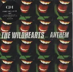 Anthem is a single released in August 1997 by The Wildhearts, on the Mushroom Records Label. It was the first Wildhearts single to be released on multiple formats (Formats: CD1 (MUSH6CD), CD2 (MUSH6CDX), 7" Vinyl (MUSH6S)) with different b-sides on each format, which caused some uproar at the time from longtime fans of the band. It reached number 21 on the UK chart.[1]