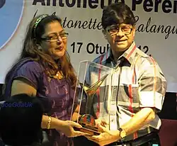 Antonette Pereira (born Antonetta Souza; 6 March 1963 – 6 March 2014), known professionally as Antonette de Calangute, was an Indian theatre actress, and singer who worked on the Konkani stage. A versatile performer, she is best known for her portrayal of tragic characters in tiatr productions.