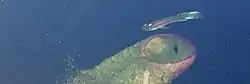The species is a freshwater fish.[4] The maximum length is 5 cm (2.0 in).[5] Its anal fin has 14 rays and yellow lines. There is a black spot on each of the dorsal fins as well.[6] Markings are present surrounding the eyes and on the mouth.[7]