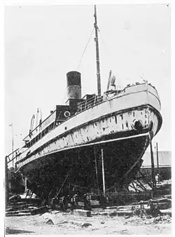 After refit Apu resumed her duties on the Archipelago Sea as a state-owned icebreaker and remained in service through the Second World War until 1959 even though during her last years in service her assistance in the Archipelago Sea was described being "more of a moral nature".[8] The 60-year-old icebreaker was decommissioned on 7 April 1959 and broken up shortly afterwards. She was replaced by the second Karhu class icebreaker, Murtaja.[9]