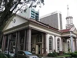 In 1888, the church was once again placed under the jurisdiction of the Diocese of Malacca when the diocese was revived, following a visit by Sultan Abu Bakar of Johor to Rome for an audience with Pope Leo XIII three years prior.[10] The Diocese of Malacca was raised to the rank of an archdiocese in 1953. In 1955, the Archdiocese of Malacca was split and an ecclesiastical province was formed in its place comprising the Archdiocese of Malacca-Singapore as the metropolitan see and the Diocese of Kuala Lumpur and Diocese of Penang as suffragan dioceses.