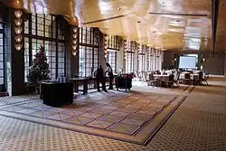 The Aztec Room was the original ballroom of the Biltmore. The 2,800 square feet room has a gold leaf ceiling and copper beams. Frank Lloyd Wright was instrumental in the room's design which had few or no adjustments.[3][16][17]