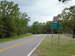 A road between Petit Jean State Park and Oppelo was first shown on state highway maps in 1936; this road was marked as Highway 154 in 1937 and was paved by 1940.[5][6][7][8] Between 1942 and 1945, the Yell County section of what is now Highway 154 was added to the state highway system as part of Highway 80.[9][10] In 1956, Highway 154 was extended into Yell County along the route of Highway 80; its routing has not changed since.[11][12] The highway was paved between Centerville and Petit Jean State Park in 1960, and the remainder of the route was paved by 1968.[13][14][15]