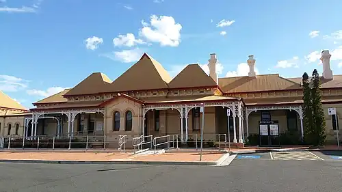 Armidale railway station is a heritage-listed railway station at 240 Brown Street, Armidale, New South Wales, Australia. It was built from 1882 to 1883 by Edmund Lonsdale and Henry Sheldon Hoddard, and was opened on 3 February 1883 when the line was extended from Uralla. It was the terminus of the line until it was extended to Glen Innes on 19 August 1884.[1][2] It was added to the New South Wales State Heritage Register on 2 April 1999.[3]