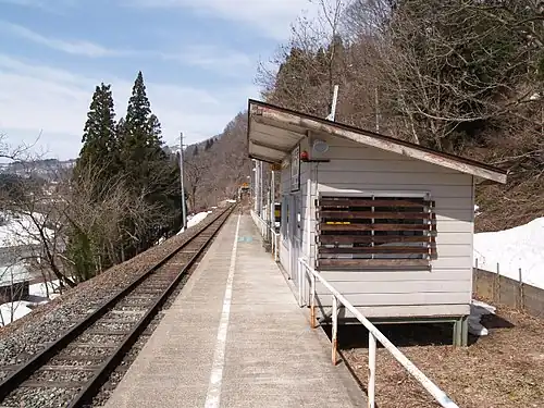 Ashidaki Station (足滝駅, Ashidaki-eki) is a railway station in the town of Tsunan, Nakauonuma District, Niigata Prefecture, Japan operated by East Japan Railway Company (JR East).