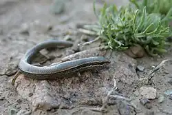 The Asian snake-eyed skink (Ablepharus pannonicus) is a species of skink. It is found in Georgia, southern Turkmenistan, southern Tajikistan, Uzbekistan, Kyrgyzstan, western Azerbaijan, eastern Iran, Iraq, Oman, Afghanistan, Pakistan, Jordan, Syria, the United Arab Emirates, northwestern India, and Cyprus.