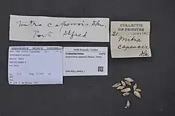 Austromitra capensis is a species of small sea snail, marine gastropod mollusc in the family Costellariidae, the ribbed miters.[1]