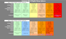 Swapping of the four-cylinder RS engines is slightly more complicated than the V6 GS mainly due to ECU, wiring harness, and MAF combinations as well as motor mounts. The V6 swaps require specific ECU, intake manifold, and VAF sensor combinations, but there are far fewer variables to deal with. Many improvements can be made after the engine swap and during the engine tuning process to find the best combination of engine peripherals.