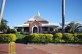 The Ayr Court House is one of several buildings that contribute to the town's civic precinct in the main street, Queen Street. The police station, court house, town hall, library and post office dominate the north-west side of Queen Street between Mackenzie and Young Streets.[1]