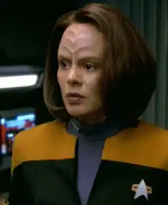 During season one, Dawson initially doubted her readiness to portray her character's dual roles in the early-series episode 'Faces.' However, she used the episode to learn more about her character, and it became one of her favorite episodes. When the episode aired, she called her parents to ask their opinions, and they replied, "You were good, but the girl that played that Klingon was really great!", which Dawson took as a compliment.[2] Joy Kilpatrick was a stand-in of one of two versions albeit uncredited.[3]