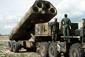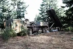 Note: Each GLCM squadron was further subdivided into several flights. Each flight included 2 Launch Control Vehicles (LCC) and 4 Transporter Erector Launchers (TEL), totalling 16 missiles per flight. Each TEL could carry 4 missiles.[14][15]