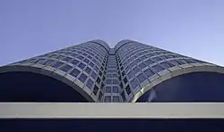 The BMW Headquarters (German: BMW-Vierzylinder, lit. 'BMW four-cylinder'), also known as the BMW Tower (German: BMW-Turm or BMW-Hochhaus), is a high-rise building located in the Am Riesenfeld area of Munich, Germany. The building has served as the global corporate headquarters of German automaker BMW since 1973. It was declared a protected historic building in 1999, and it is often cited as one of the most notable examples of modern architecture in Munich. Extensive renovations commenced in 2004 and were completed in 2006.