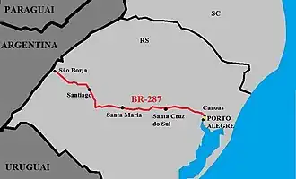 The BR-287 is a 536.9 km-long[2] federal highway across the Brazilian state of Rio Grande do Sul, also known as the Highway of Integration.[3]