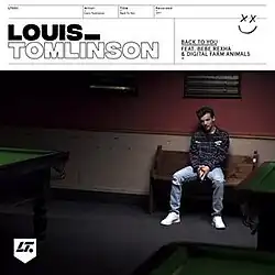 "Back to You" is the second solo single of English singer-songwriter Louis Tomlinson featuring American singer Bebe Rexha and English DJ and producer Digital Farm Animals. It was written by Tomlinson, Digital Farm Animals, Pablo Bowman, Richard Boardman, and Sarah Blanchard, while the production was handled by Digital Farm Animals and Tommy Danvers. The single was released on 21 July 2017;[1] its accompanying music video premiered the same date.