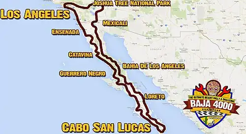 - ^ a b Olsewski, Steven (28 March 2016). "Baja 4000 Amateur Rally". Off Road Xtreme. Archived from the original on 15 November 2019. Retrieved 15 January 2021.