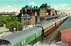 The first station building dates back to 1880, with the launch of the Baku-Tbilisi railway. The architecture of the first building was in the Moorish Revival style.[2] In 1926, the second station complex, Sabunchu Station, was designed and constructed to serve the electrified Baku–Sabunchu railway. The architecture of the second building is also in the Moorish Revival style.[3] In 1967, the 28 May metro station was built and connected to the Sabunchu Station by a pedestrian tunnel.[4] In 1977, the station underwent a major renovation, during which a modern station building was built, adjacent to the old Sabunchu Station.[3] In 2017, the station underwent a renovation again.[5]