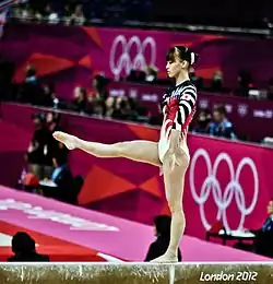 ![]() Nadia Comăneci competing on the balance beam at the 1976 Summer Olympics | |