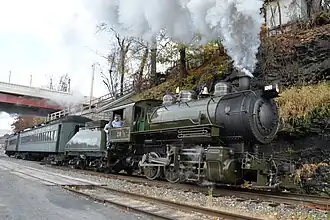 The ensuing overhaul, which lasted seventeen years, saw the rebuilding of the locomotive's running gear, replacement of the firebox, straightening of the frame, re-boring of the cylinders, and other various preventative maintenance.[1] The engine's overhaul was completed in late 2015 and made a successful test run on December 10, 2015.[1][2] It made its official excursion service return on April 17, 2016.[1][5] Following its return to service, No. 26 resumed its position as power on the Scranton Limited and “Nay Aug Gorge Limited” yard shuttles.[1][2]