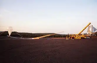 In many countries, the bureaucratic overhead required for high altitude balloon launches is minimal when the payload is below a certain weight threshold, typically on the order of a few kilograms.[10][11] This makes the process of launching these small HABs accessible to many students and amateur groups. Despite their smaller size, these HABs still often ascend to (and past) altitudes on the order of 30,000 m (98,000 ft), providing easy stratospheric access for scientific and educational purposes.[12][3][4][13][14][15] These amateur balloon flights are often informed in their operations by the use of a path predictor. Before launch, weather forecasts containing predicted wind vectors are used to numerically propagate a simulated HAB along a trajectory, predicting where the actual balloon will travel.[16]