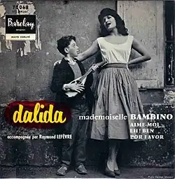 "Bambino" (Italian for "Little Boy" or "Child") is a song recorded by Italian-French singer Dalida that became her first major hit. It was first released on 28 October 1956 as the title song of her third EP, prior to her debut album Son nom est Dalida, where it was also included.[1] It is a French version of the Neapolitan song "Guaglione".