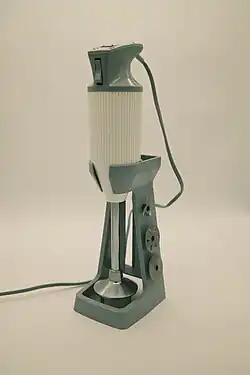 ESGE AG,[3] operating under the brand name Bamix (stylized bamix), is a Swiss company founded in 1953[1] that is active in the sector of electrical kitchen appliances. It is known for the Bamix, a hand-held blender which was invented by Roger Perrinjaquet, a Swiss engineer, and fully produced in Switzerland. ESGE AG also produces appliances which are co-branded. The models are Mono, Classic, DeLuxe, SwissLine, Superbox, Gastro, and SliceSy.