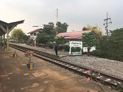 Ban Pa Wai station (Thai: สถานีบ้านป่าหวาย) is a railway station in Pa Tan Subdistrict, Lopburi City, Lopburi. It is a class 3 railway station 127.441 km (79.2 mi) from Bangkok railway station. It also serves the Pa Wai Royal Thai Army Special Warfare Command military base.