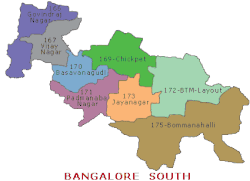 | Assembly constituencies | Govindraj Nagar Vijay Nagar Chickpet Basavanagudi Padmanabhanagar B.T.M. Layout Jayanagar Bommanahalli |