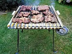 A barbecue grill or barbeque grill (known as a barbecue in Canada and barbecue or barbie in Australia and New Zealand) is a device that cooks food by applying heat from below. There are several varieties of grills, with most falling into one of three categories: gas-fueled, charcoal, or electric. There is debate over which method yields superior results.[1][2]