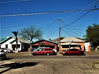 The Barrio Santa Rosa is a neighborhood in Tucson, Arizona that is also a historic district listed on the U.S. National Register of Historic Places on September 23, 2011 .[2] It includes 124 buildings, built in adobe, brick, wood and other materials, in a variety of architectural styles. Architectural styles represented includes traditional Sonoran, Postwar Territorial (Territorial Revival), Queen Anne, Bungalow/Craftsman, Mission/Spanish revival, and modern ranch.[2]: 2