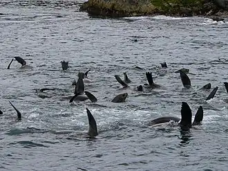 The majority of the seals are Australian fur seals, (Arctocephalus pusillus doriferus), New Zealand fur seals (Arctocephalus forsteri), subantarctic fur seals (Arctocephalus tropicalis) and Australian sea lions (Neophoca cinerea) have also been observed.