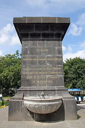 Since 1812, the square in front of Saint Castor's has been the location of a fountain called Kastorbrunnen, which has a humorous comment referring to the Napoleonic wars, which also affected Koblenz.