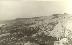 The 6th Squadron, commanded by Major Charles Dick, were also sent forward to support the 2nd Squadron's attempt to break through to the post. Advancing along the ridge from No.2 Post, they reached a position on the open plateau to the north of No.3 Post, but neither of the relieving squadrons could break through the Turkish lines, and were confronted by heavy Turkish fire from the surrounding higher ground. They were blocked by the sheer number of Turkish troops. Around noon the Turks undermined and blew up part of the trench at No.3 Post, which they then occupied. Turkish attacks continued all day, and they brought into action a mountain artillery gun from a nearby position. It was now estimated that around 3,000 Turkish troops were involved in the assault on No.3 Post.[35]